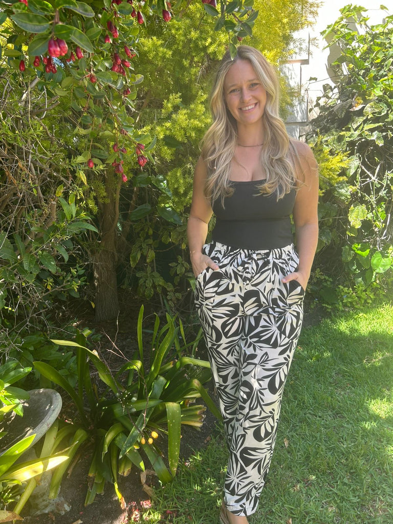 Black & Beige Elastic Trousers