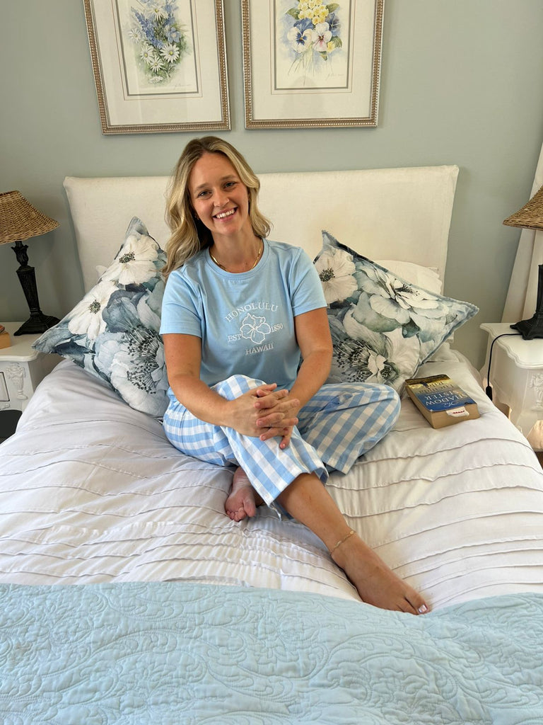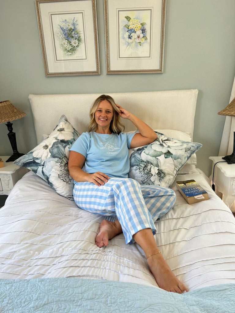 Drift into comfort with this beautifully soft cotton pajama set. Featuring relaxed blue check long cotton pants and a super soft cotton knit embroidered T-shirt, it’s designed for breathable comfort and effortless style. Lightweight, cozy and gentle on the skin — perfect for restful nights and slow mornings.