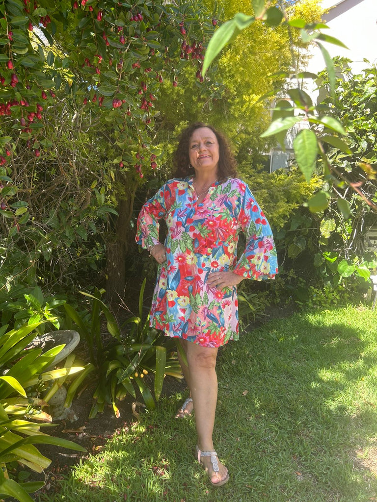 Embrace hot summer days with our Short Mandarin Dress, crafted from soft pre-washed viscose. Featuring a light, flowy A-line silhouette that falls just above the knee and finished with bell sleeves, this effortlessly stylish dress is perfect for both casual days and dressed-up summer moments.