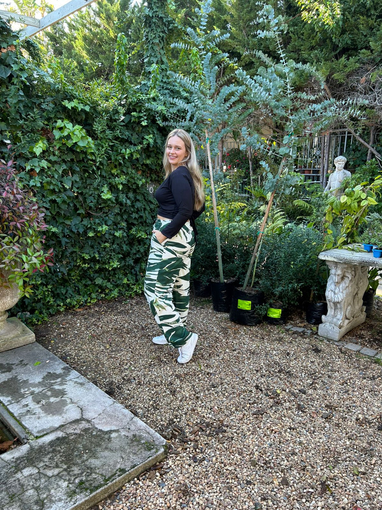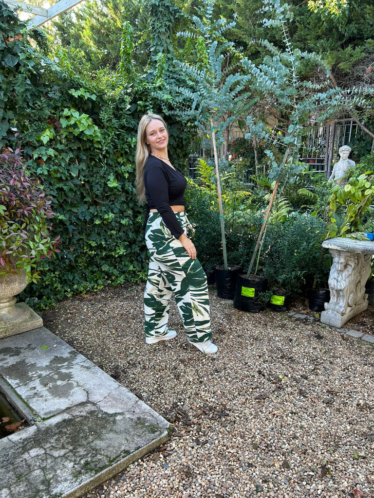 Leaf Print Wide Leg Trouser