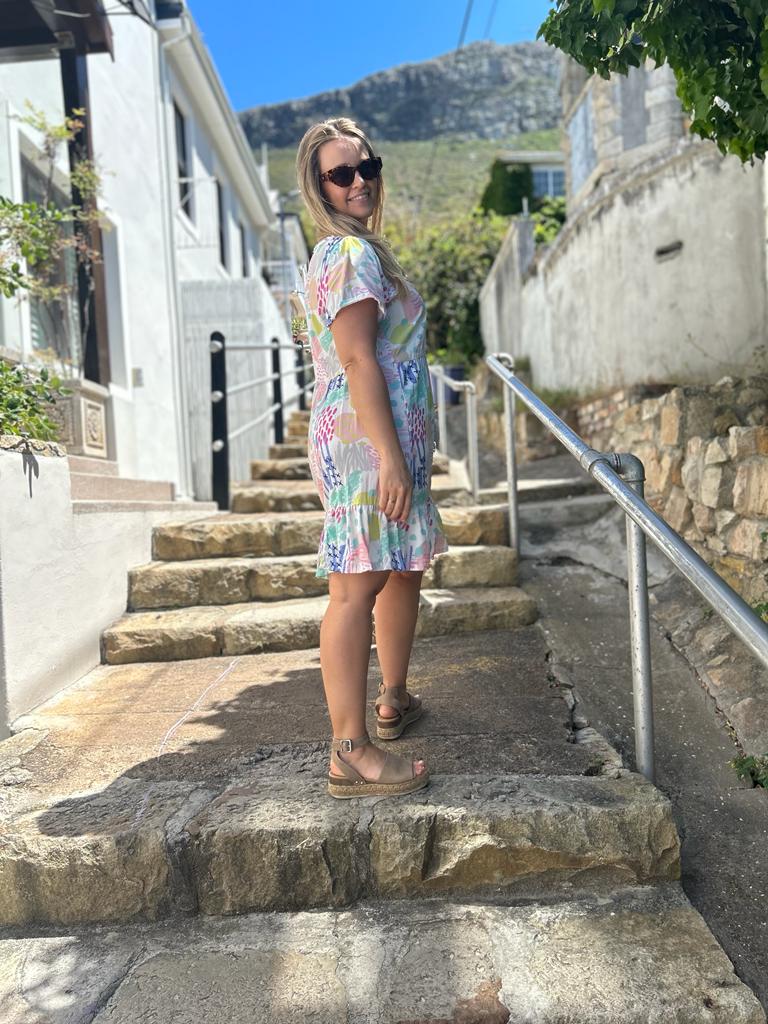 Experience the perfect blend of style and comfort with our short sleeve fun print summer dress. Crafted from pre-washed viscose fabric, this dress features a flattering v-neckline and playful tiered design. Embrace the summer vibes effortlessly. Shop now and make a bold fashion statement.